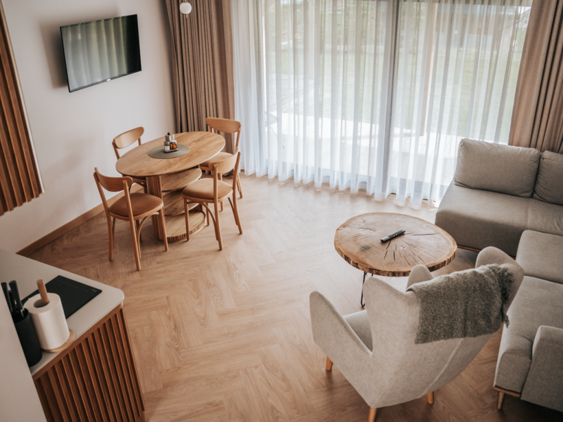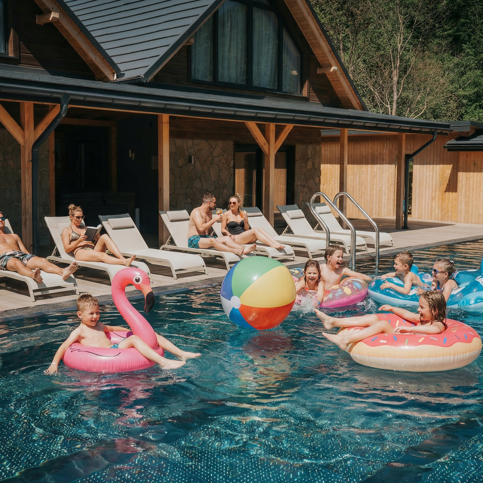 Po dniu pełnym wrażeń wracasz do komfortu resortu w Jabłonkach, gdzie czeka czas tylko dla Ciebie: basen, sauny i jacuzzi dostępne w cenie pobytu. To wyjątkowe połączenie bliskości natury z luksusem wypoczynku sprawia, że każdy dzień kończy się spokojem, regeneracją i poczuciem pełnego urlopu.