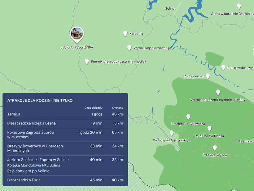 Bieszczady to idealne miejsce, by połączyć aktywność na świeżym powietrzu z prawdziwym relaksem. Górskie szlaki, Połoniny przyjazne rodzinom, jeziora i rzeki znajdują się na wyciągnięcie ręki, a większość najciekawszych atrakcji dostępna jest w niecałą godzinę jazdy samochodem.